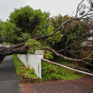 這是2月14日在新西蘭奧克蘭拍攝的受損樹(shù)木。