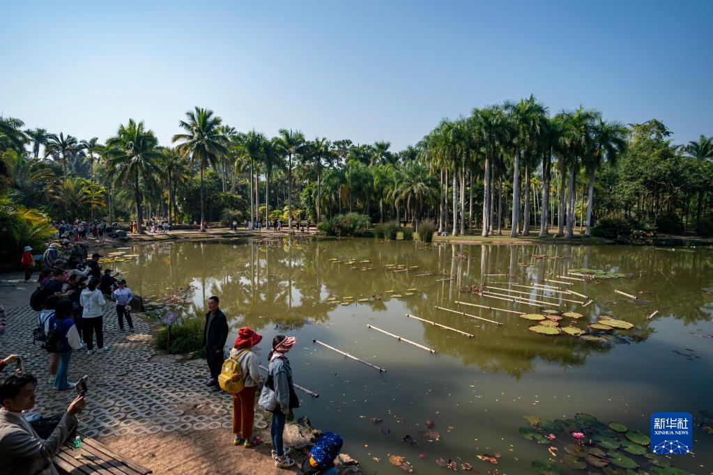 2月12日,游客在位于西雙版納州勐臘縣勐侖鎮的中國科學(xué)院西雙版納熱帶植物園內游覽。