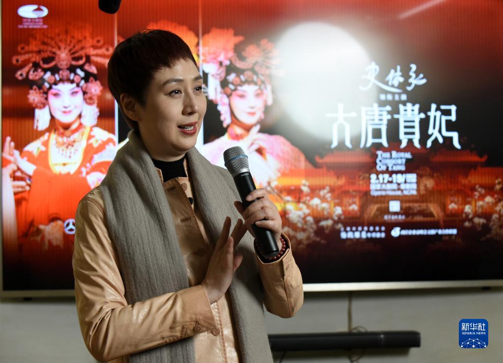 2月14日,京劇演員史依弘在媒體見(jiàn)面會(huì )上演唱《大唐貴妃》中的唱段。