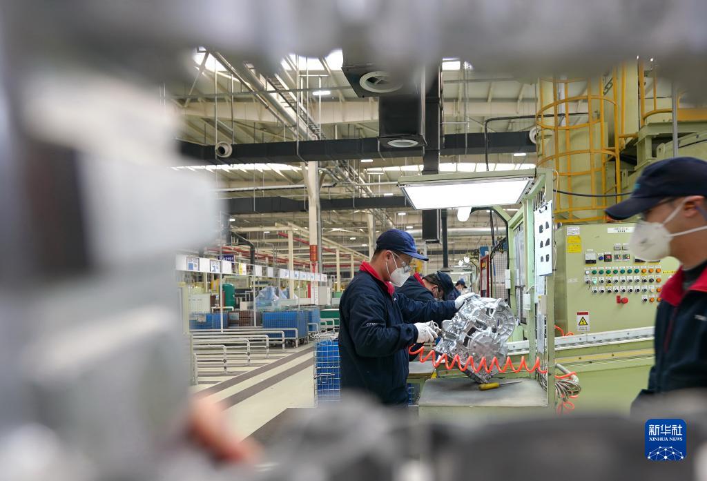 2月14日,工人在唐山市豐潤區一家汽車(chē)變速箱制造企業(yè)的生產(chǎn)線(xiàn)上工作。
