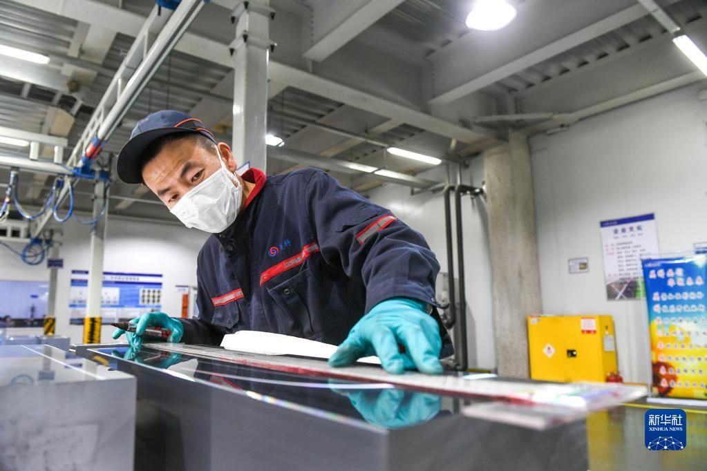 2月14日,包頭一家硅材料生產(chǎn)企業(yè)的工人在車(chē)間測量單晶硅體尺寸。