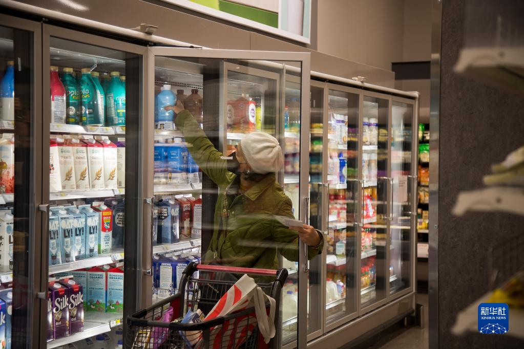 2月14日,顧客在美國紐約市布魯克林一家食品雜貨店選購物品。