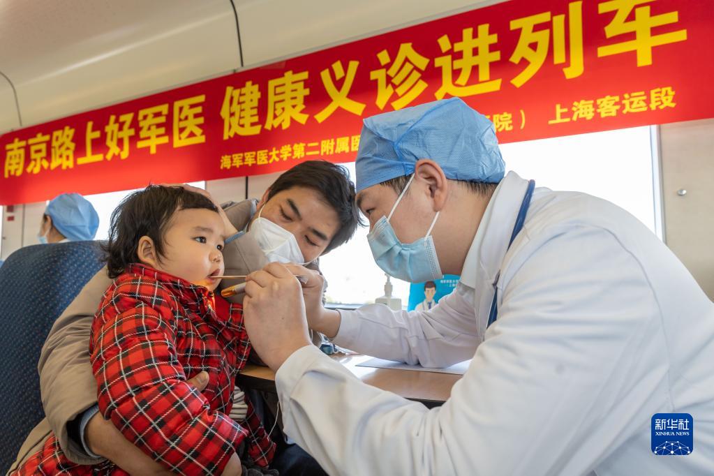 當日是2023年春運最后一天,鐵路上??瓦\段和海軍軍醫大學(xué)第二附屬醫院(上海長(cháng)征醫院)聯(lián)合在D956次列車(chē)上開(kāi)展健康義診進(jìn)列車(chē)活動(dòng),醫生為旅客免費體檢,并進(jìn)行健康教育普及。