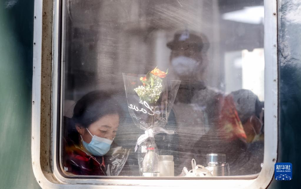 2月15日,旅客在湖北武昌站乘坐列車(chē)出行。