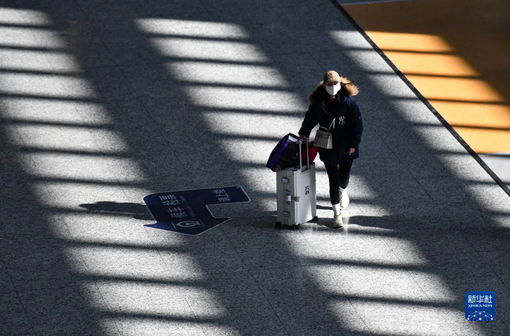 2月15日,旅客在安徽阜陽(yáng)西站進(jìn)站準備乘車(chē)。
