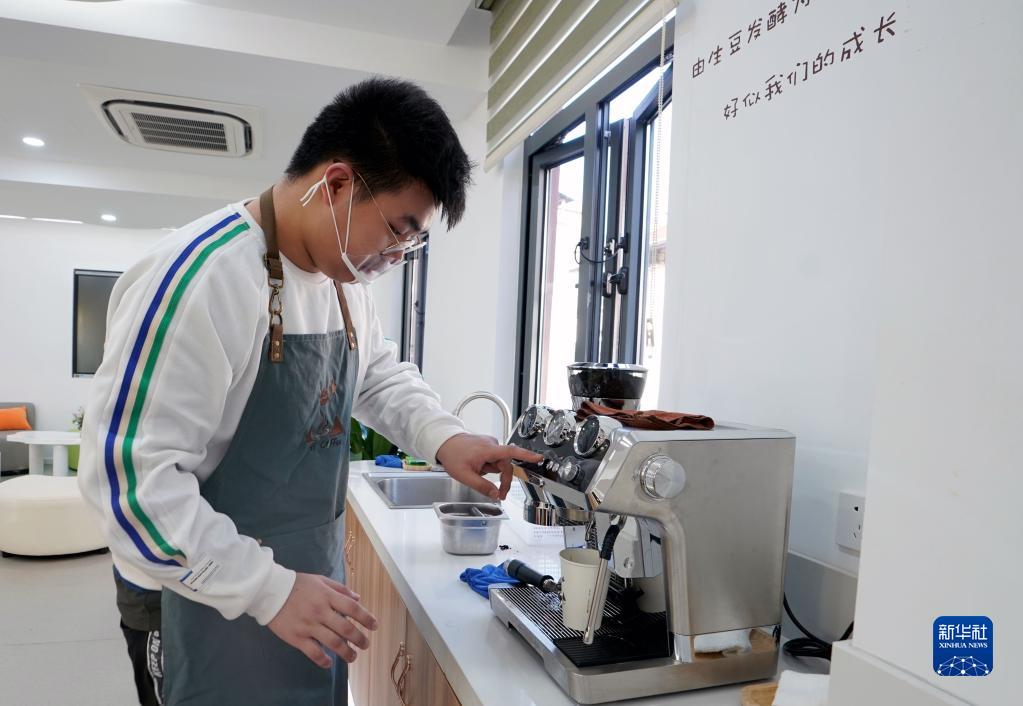 2月15日,黃浦區特殊教育職業(yè)學(xué)校的學(xué)生在制作咖啡。