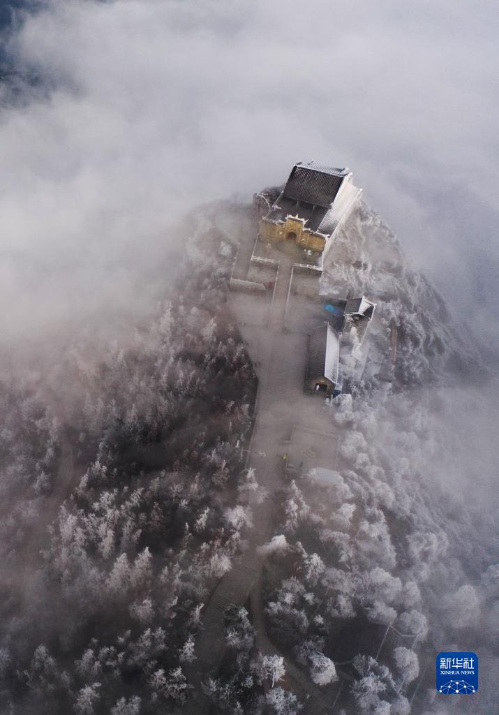 當日,湖南省衡陽(yáng)市南岳衡山風(fēng)景區雪后初霽,晶瑩剔透的霧凇在云海里若隱若現,景色如畫(huà)。