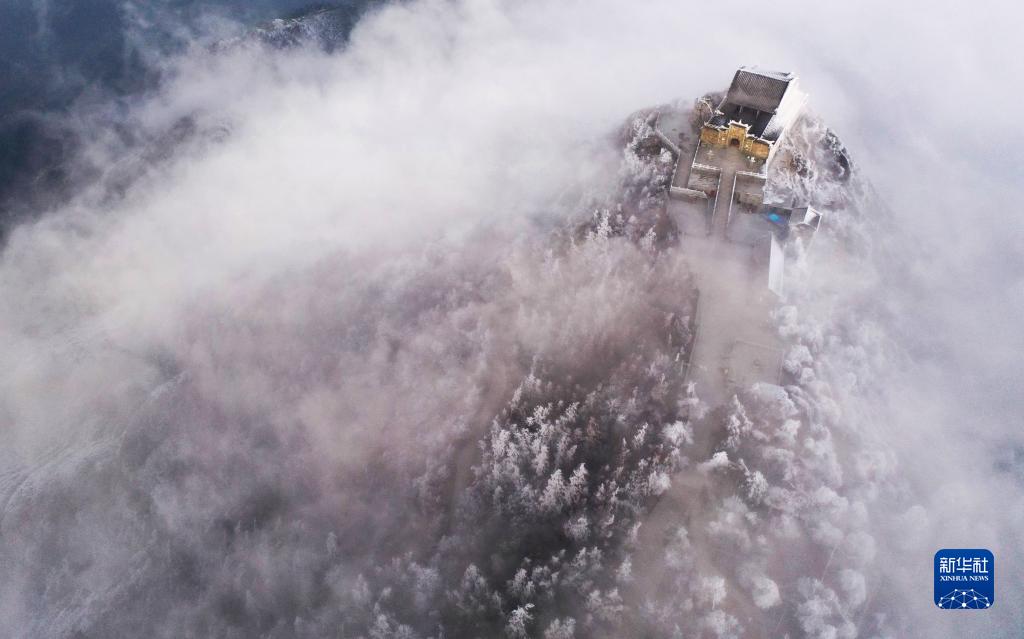 當日,湖南省衡陽(yáng)市南岳衡山風(fēng)景區雪后初霽,晶瑩剔透的霧凇在云海里若隱若現,景色如畫(huà)。