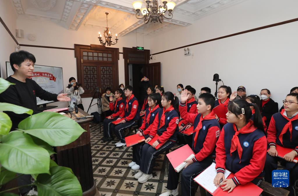 2月15日,《中文自修》雜志方濟力老師在中國左翼作家聯(lián)盟成立大會(huì )會(huì )址紀念館課堂上與同學(xué)們互動(dòng)交流。