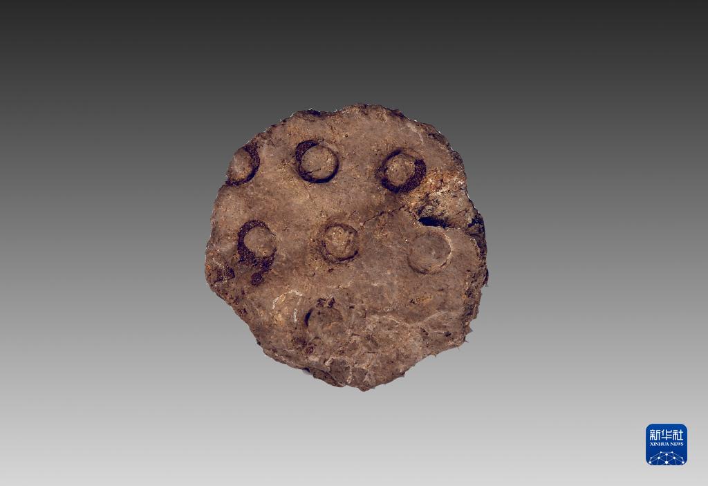 河北尚義四臺遺址出土的戳印圓圈紋陶片(資料照片)。
