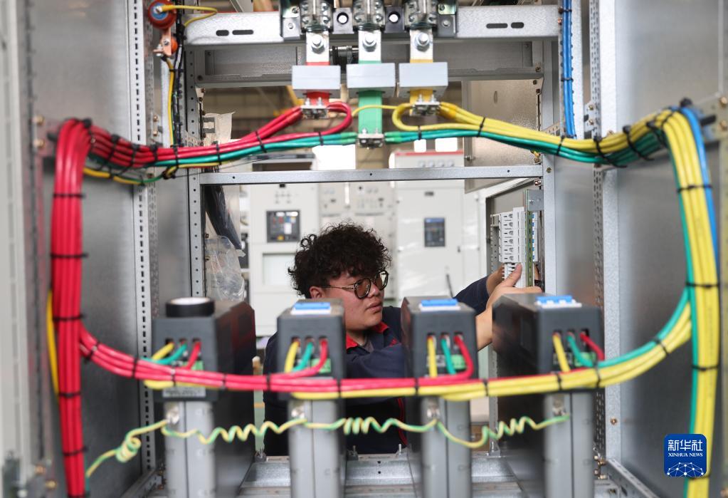 2月15日,在云南省大理市一變壓器生產(chǎn)車(chē)間,工人安裝變壓器配件。