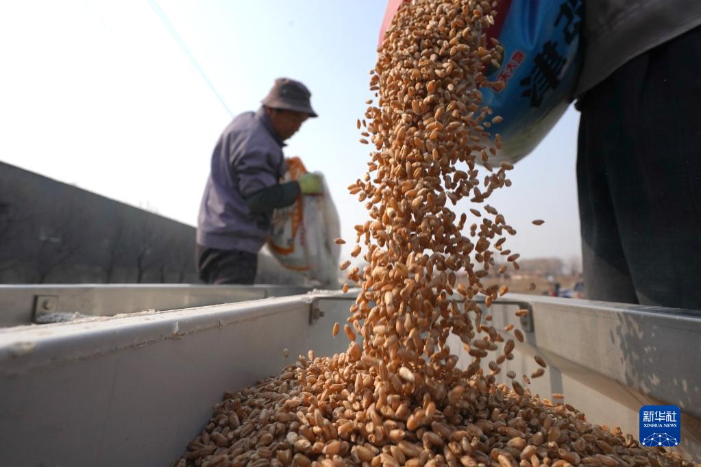 2月16日,唐山市蘆臺經(jīng)濟開(kāi)發(fā)區海北鎮小海北村農民將備好的小麥種子、肥料一起放進(jìn)播種機。