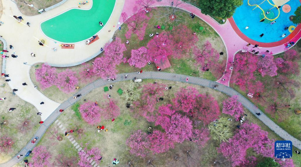 2月15日,安徽省合肥市蜀山區綠軸公園梅花盛開(kāi),眾多市民前來(lái)游玩賞花(無(wú)人機照片)。