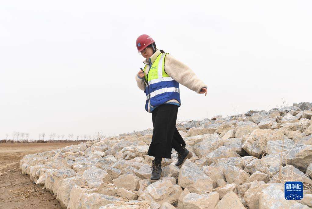 楊鑫博在雄安唐河河谷郊野公園項目現場(chǎng)(2月15日攝)。