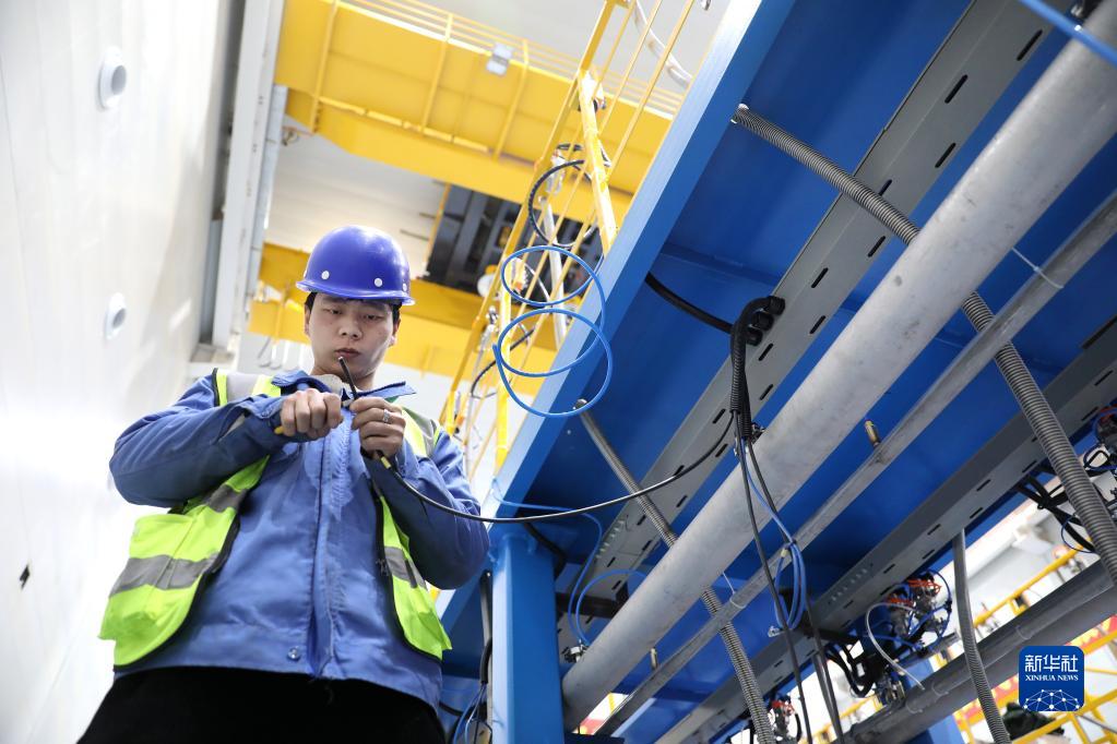 2月16日,工人在即將完工的特高壓套管研制基地內進(jìn)行設備調試。