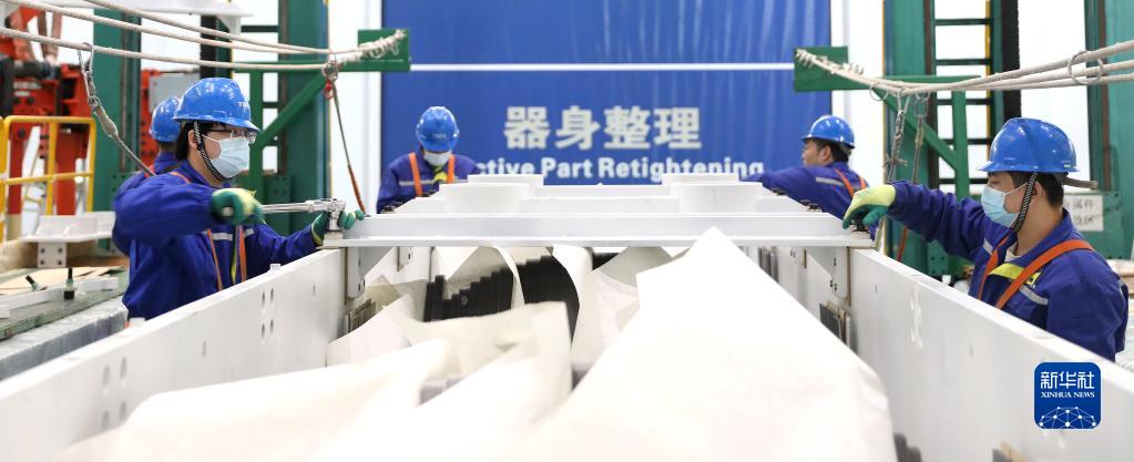 2月16日,工人在車(chē)間內進(jìn)行設備器身整理。