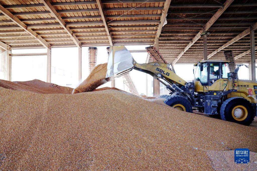 2月15日,在黑龍江鴻展生物能源有限公司,鏟車(chē)在鏟運玉米進(jìn)行投料。