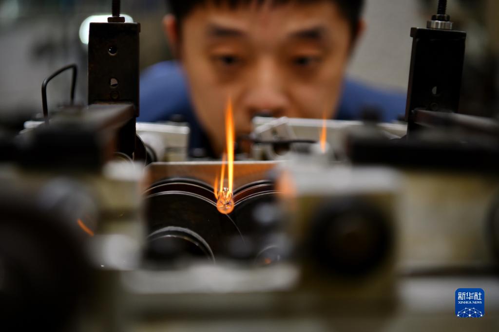 2月16日,在位于獻縣的滄州來(lái)福汽車(chē)照明集團燈泡車(chē)間,工人在生產(chǎn)線(xiàn)上檢查設備運行情況。