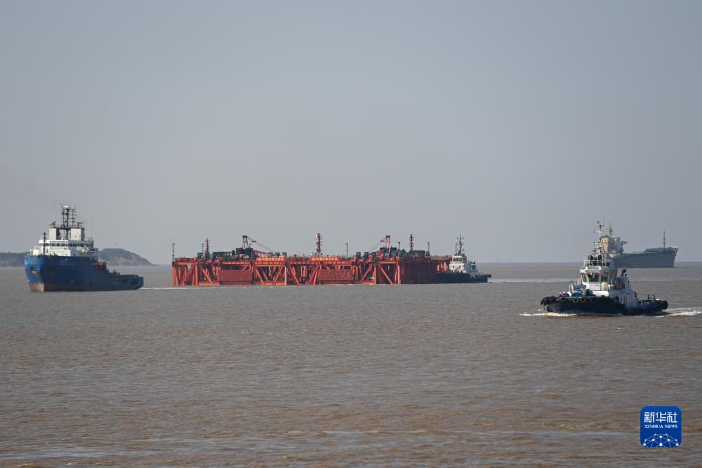 2月16日,拖船將甬舟鐵路西堠門(mén)公鐵大橋5號墩自浮式鉆孔平臺浮運到浙江舟山西堠門(mén)水道。