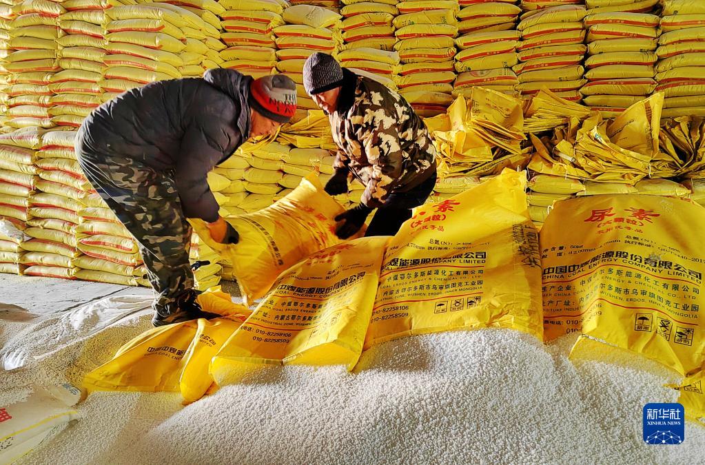 2月16日,北大荒集團五大連池農場(chǎng)科技服務(wù)中心工人在混拌肥料,為春耕做準備。