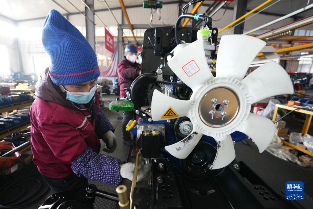 2月16日,佳木斯驥馳拖拉機制造有限公司裝配車(chē)間,工人進(jìn)行裝配作業(yè)。