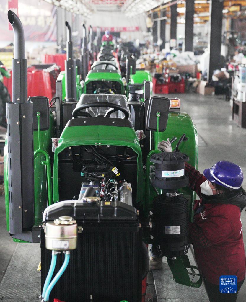 2月16日,佳木斯驥馳拖拉機制造有限公司裝配車(chē)間,工人進(jìn)行裝配作業(yè)。