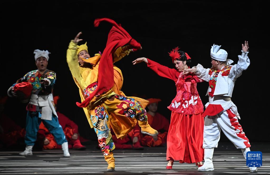 2月16日在首屆中國非物質(zhì)文化遺產(chǎn)保護年會(huì )展演活動(dòng)上拍攝的陜北秧歌劇《米脂婆姨綏德漢》演出現場(chǎng)。