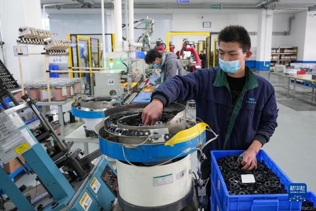 2月16日,員工在位于文登經(jīng)濟開(kāi)發(fā)區的邁世騰科技(山東)有限公司生產(chǎn)車(chē)間內加工電子元器件。這是一家專(zhuān)業(yè)設計、研發(fā)、生產(chǎn)及銷(xiāo)售新型集成電源板用電子元器件、新型電子專(zhuān)用材料的外貿型企業(yè)。