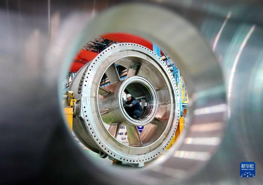 2月16日,哈電集團(秦皇島)重型裝備有限公司的工人在生產(chǎn)車(chē)間工作。