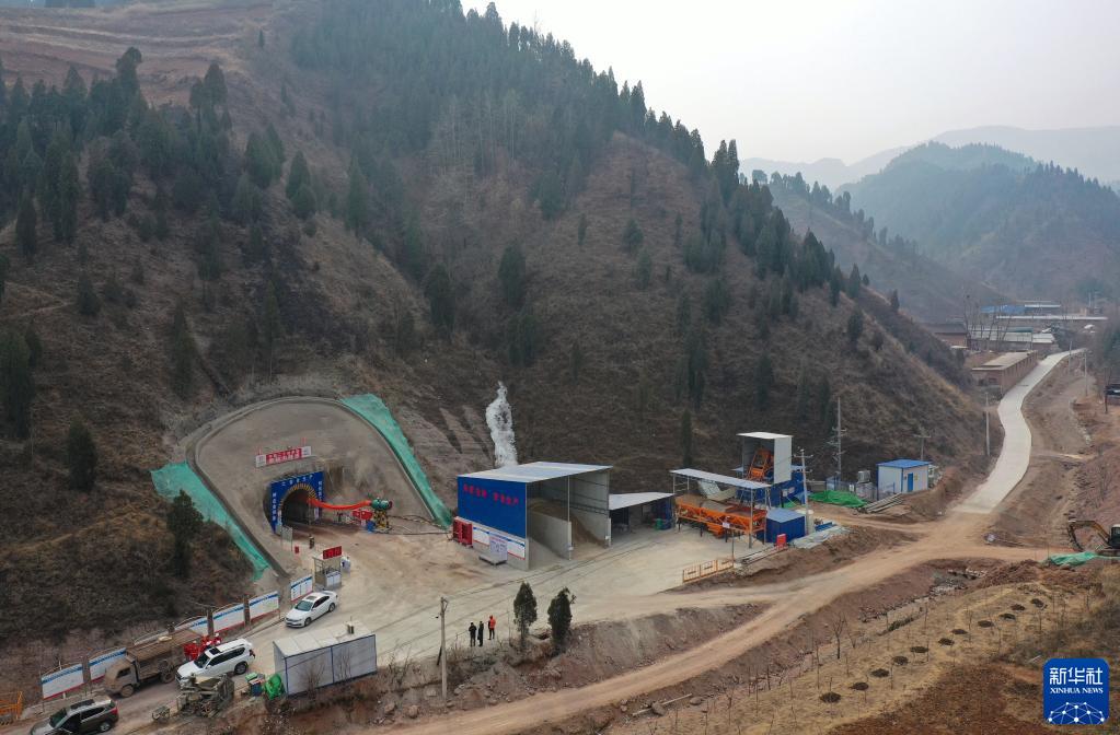 這是2月7日拍攝的位于陜西省商洛市商州區的西氣東輸三線(xiàn)工程陜西段廖峪溝隧道施工現場(chǎng)(無(wú)人機照片)。