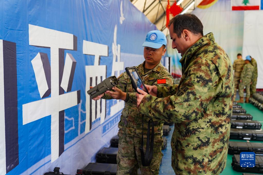 2月16日,在黎巴嫩南部辛尼亞村中國營(yíng)區,核查官員登記掃雷裝備信息。