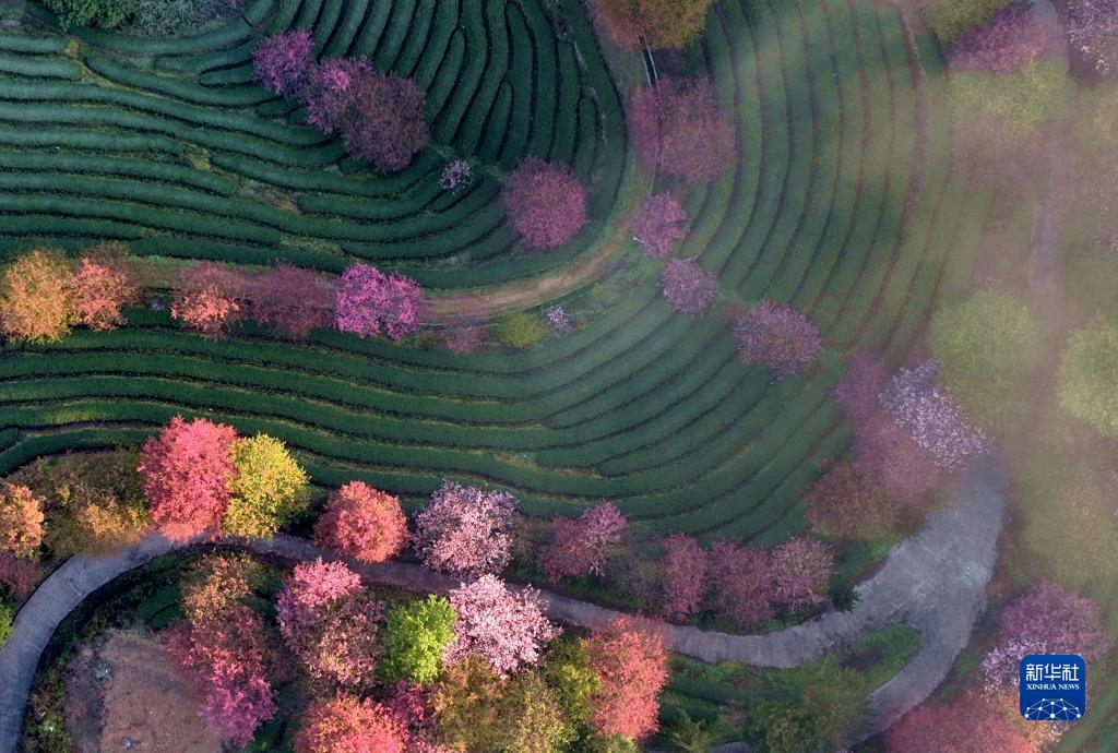 近日,福建省漳平市永福鎮臺品櫻花茶園里的櫻花迎來(lái)最佳賞花期,吸引眾多游客觀(guān)賞。