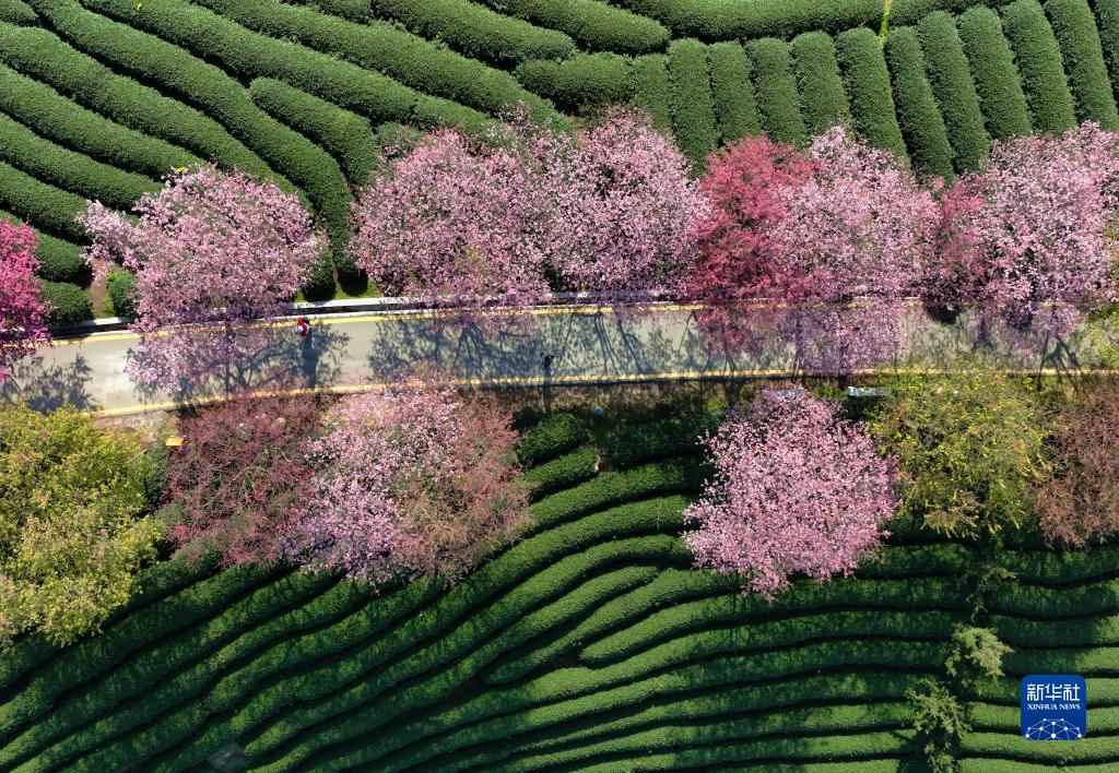 福建漳平:萬(wàn)畝茶園櫻花開(kāi)