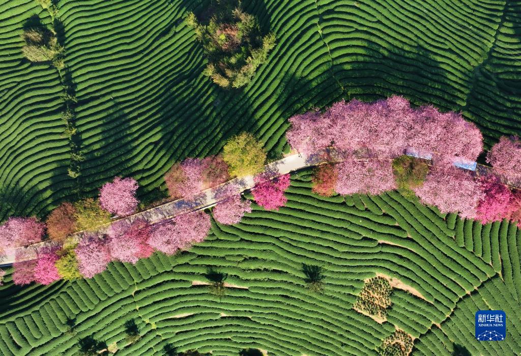 福建漳平:萬(wàn)畝茶園櫻花開(kāi)