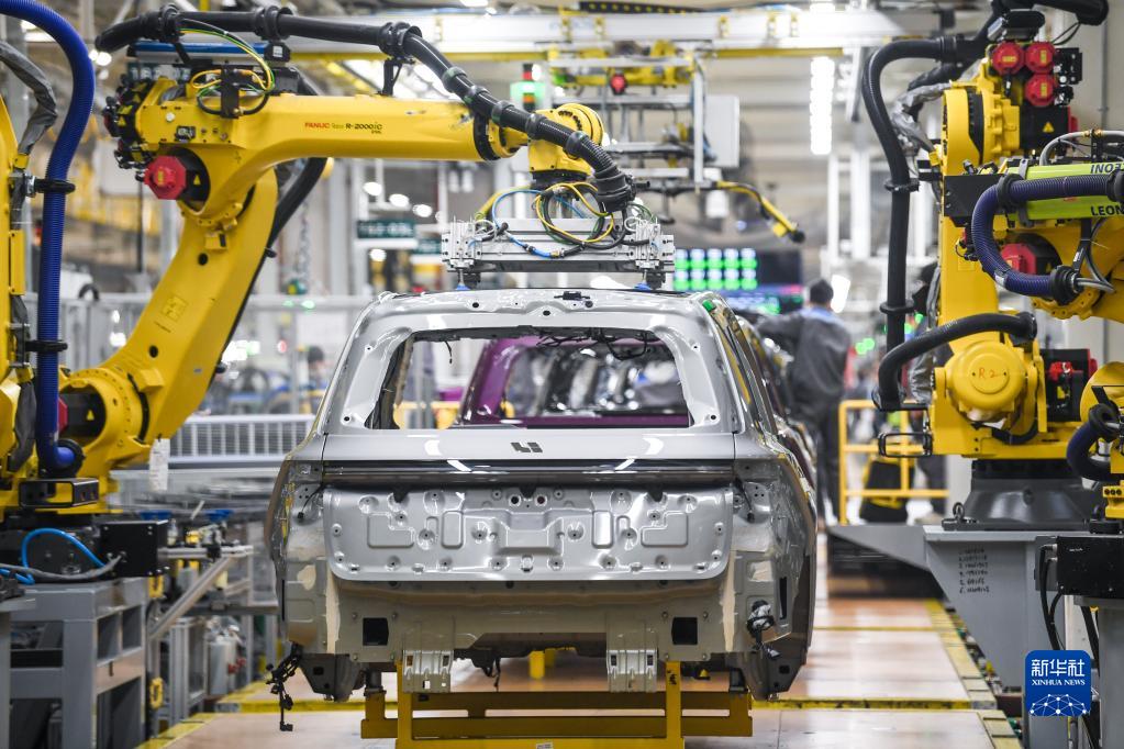 理想汽車(chē)常州基地的機器人在安裝車(chē)窗玻璃(2月15日攝)。截至2022年底,常州市新能源汽車(chē)整車(chē)年產(chǎn)量超34萬(wàn)輛。