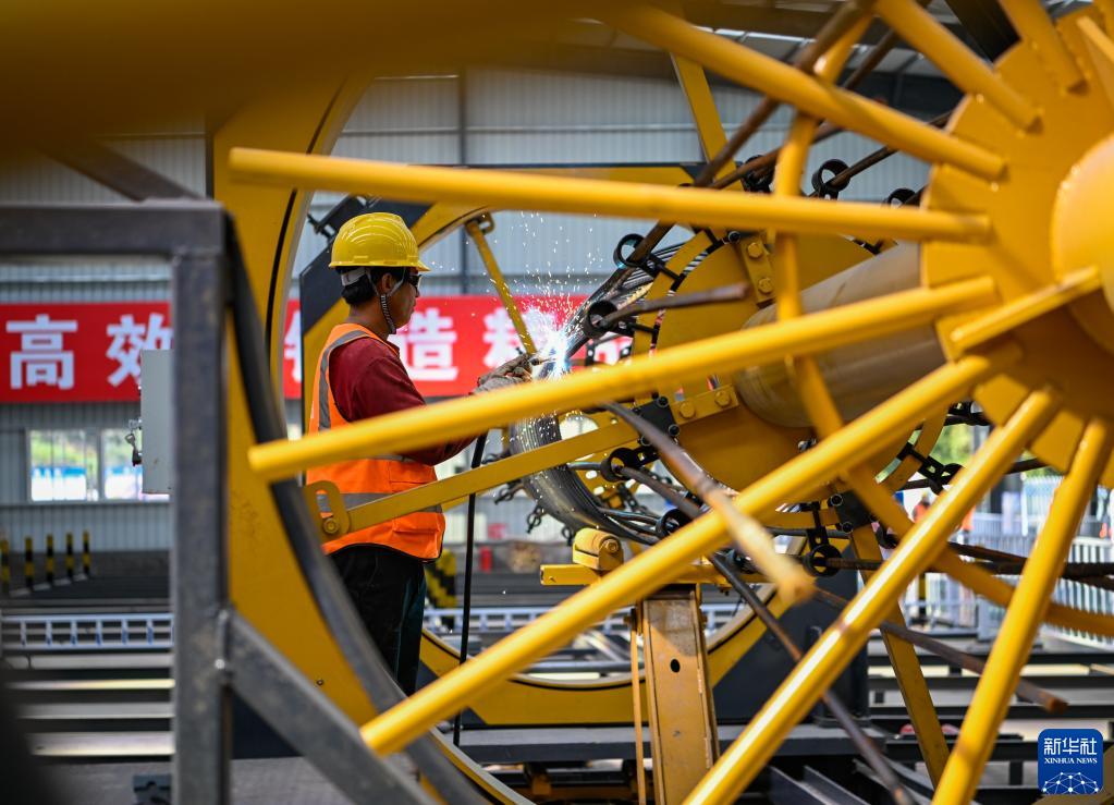 2月17日,在位于達州市境內的中鐵四局西渝高鐵鋼筋加工廠(chǎng),工人在焊接鋼筋籠。