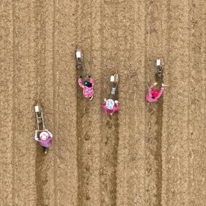 2月16日,村民在湖北省武漢市經(jīng)開(kāi)區鄧南街田間進(jìn)行播種作業(yè)(無(wú)人機照片)。