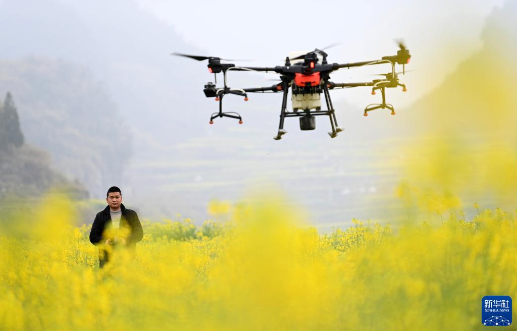 早春時(shí)節,貴州省六盤(pán)水市六枝特區木崗鎮16000余畝油菜花競相綻放。當地村民積極整地、育苗,并利用植保無(wú)人機進(jìn)行春管,一派繁忙景象。