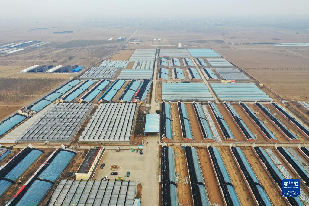 2月17日拍攝的河北省肅寧縣綠苑蔬菜專(zhuān)業(yè)合作社育苗基地(無(wú)人機照片)。