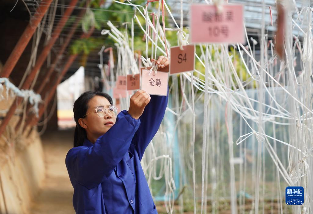 2月17日,張莎莎在試種棚內整理農作物標簽。