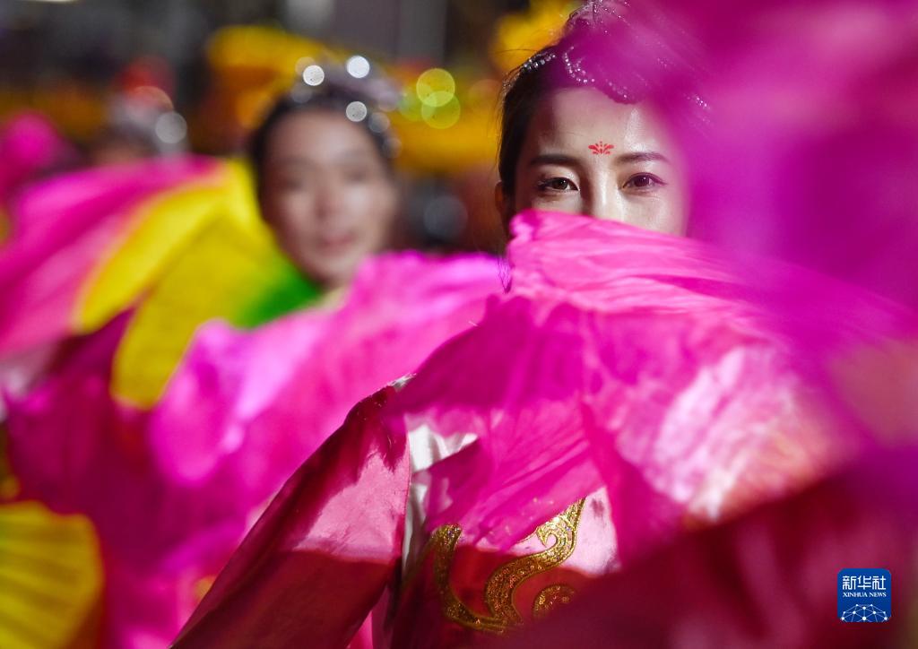 演員在榆林老街非遺大集開(kāi)集儀式上表演秧歌(2月17日攝)。