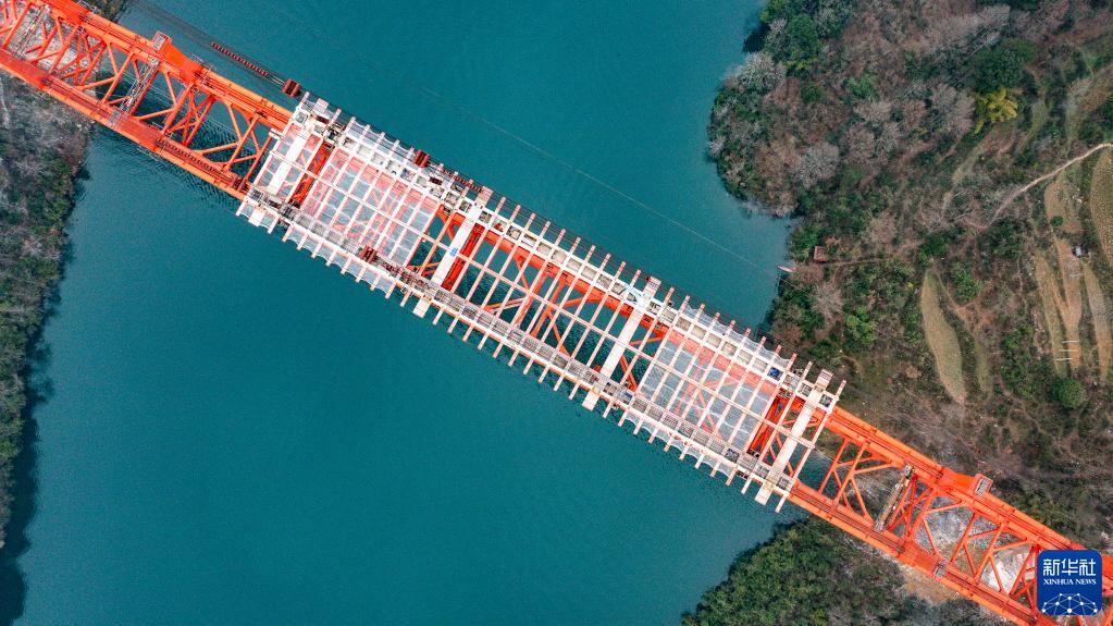 正在進(jìn)行橋面系施工的德余高速烏江特大橋(2月17日攝,無(wú)人機照片)。