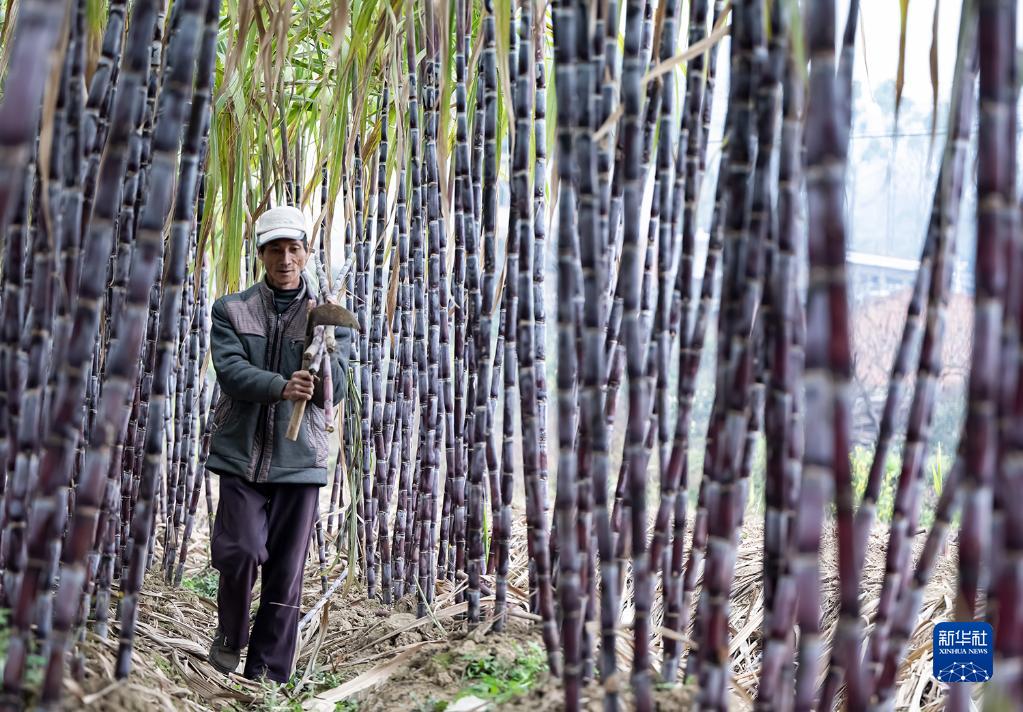 2月18日,村民在貴州省安順市關(guān)嶺布依族苗族自治縣斷橋鎮斷橋村田間管護甘蔗。