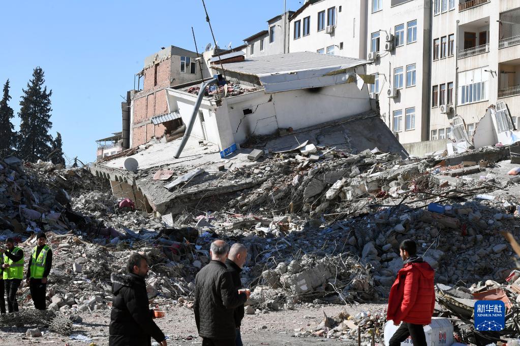 這是2月18日在土耳其南部阿德亞曼省阿德亞曼市拍攝的建筑物廢墟。