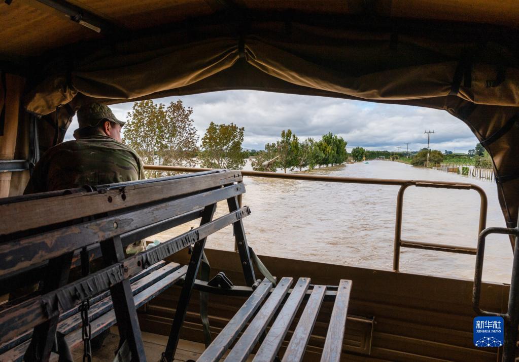2月16日,新西蘭國防軍車(chē)輛行進(jìn)在新西蘭北島東部災區。
