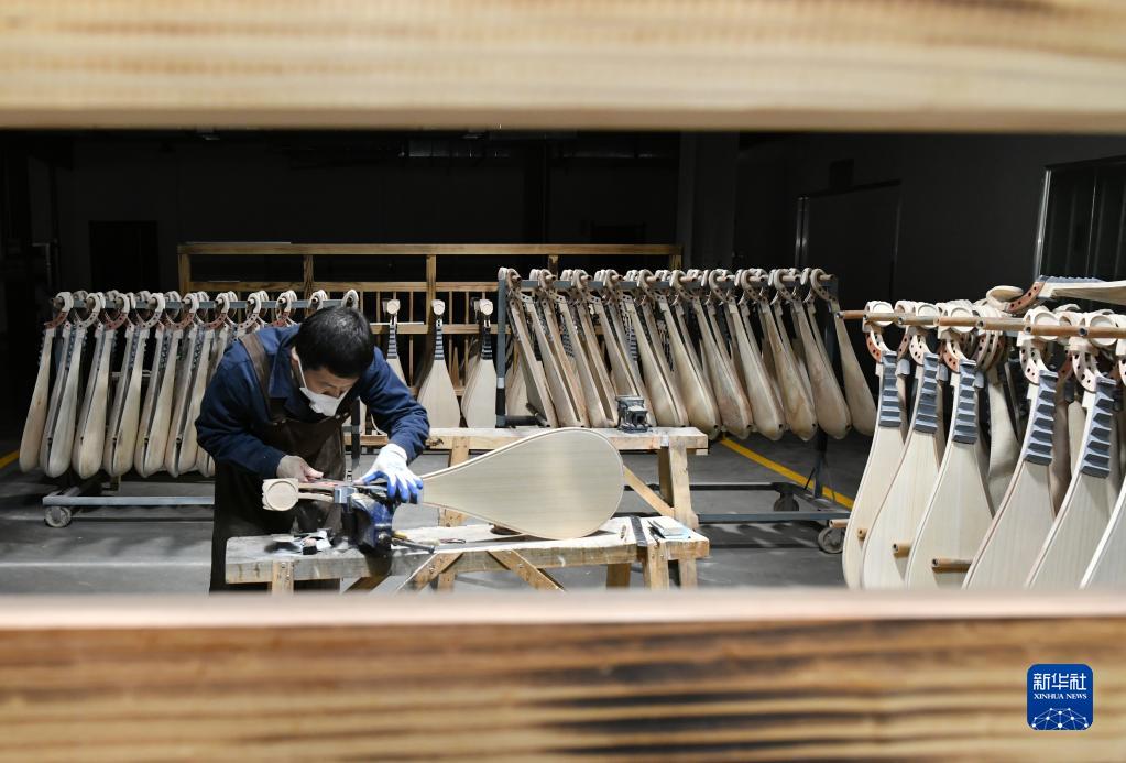 2月18日,河北省肅寧縣一家民族樂(lè )器生產(chǎn)企業(yè)的工人在生產(chǎn)車(chē)間內制作樂(lè )器。