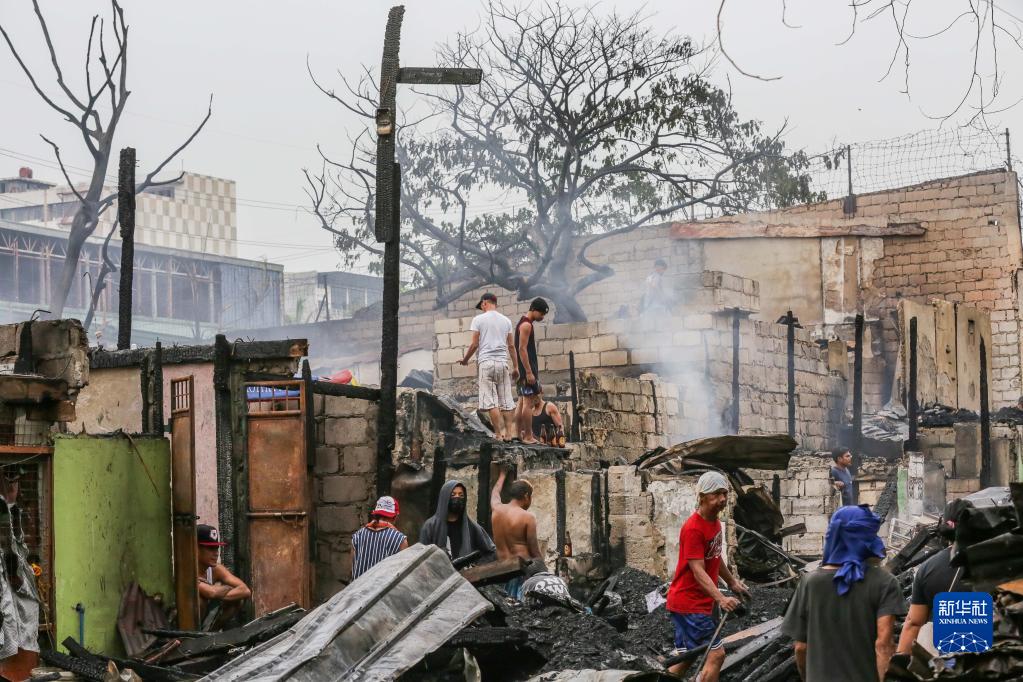 2月19日,菲律賓奎松的居民清理被燒毀的房屋。