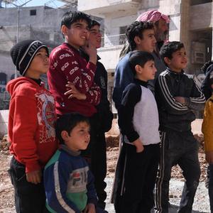 2月18日,在敘利亞哈馬省,人們從地震受損建筑中轉移家具和物品。