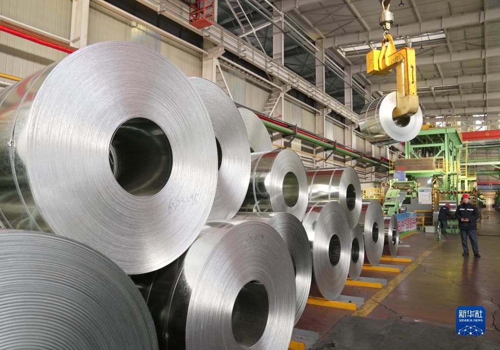 2月19日,工人在唐山市豐南區一家鍍鋅鋼板企業(yè)操作設備吊運鍍鋅鋼板。