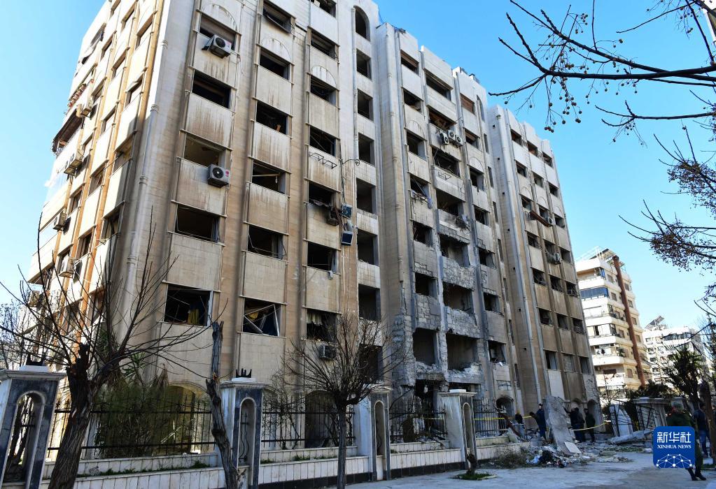 這是2月19日在敘利亞大馬士革拍攝的在導彈襲擊中受損的建筑。